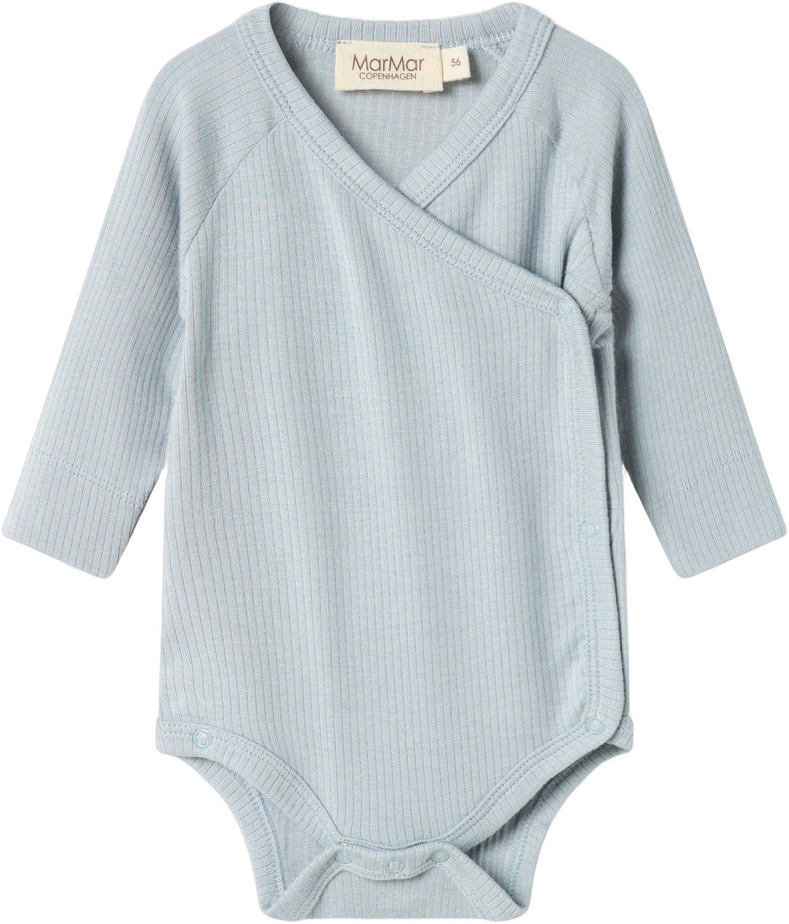 Langærmet baby modal bodystocking med stolpe knaplukning, der bliver lukket med trykknapper mellem benene for nem bleskiftning. Bodystockingen er både ribstrikket, blød, holder form og farve og har elastan i sig som gør den strækbar og behagelig at have p