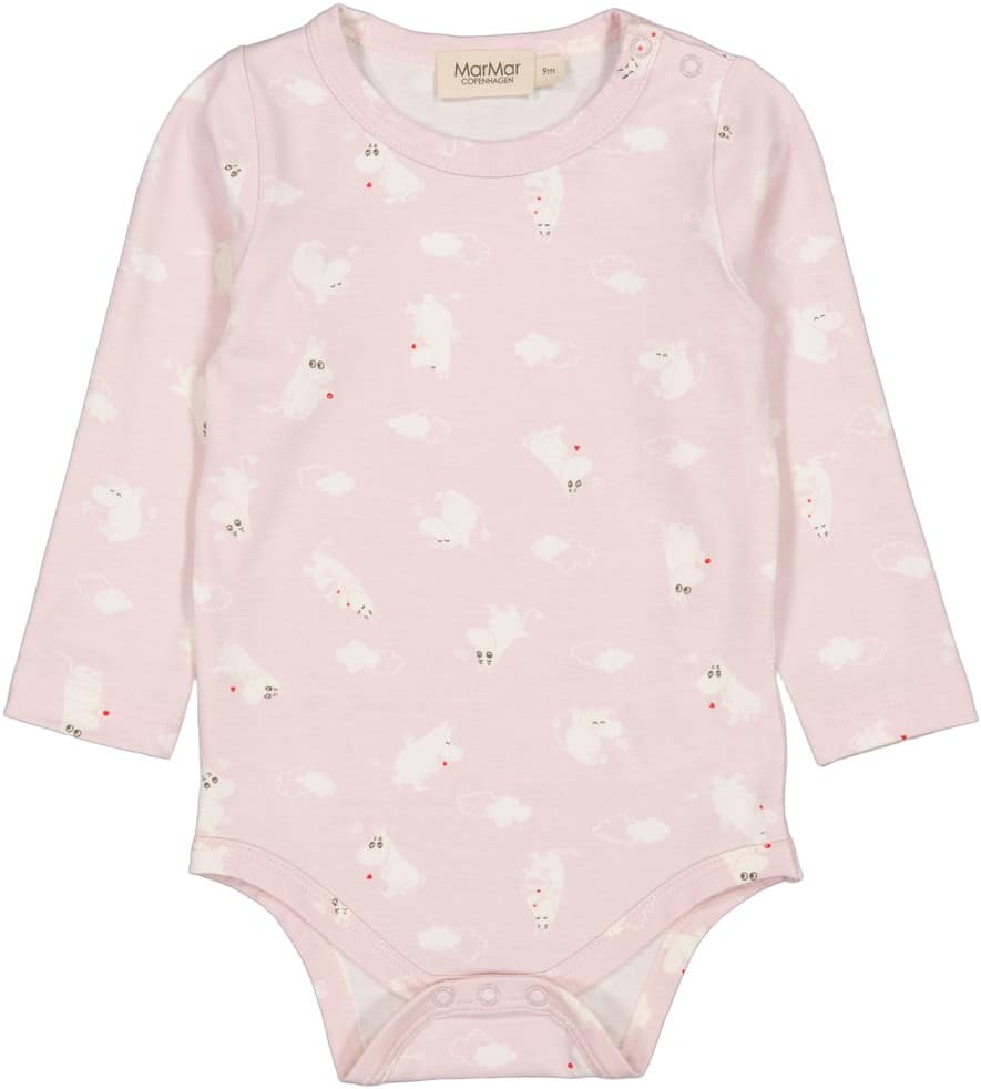 Enkel langærmet bodystocking med Moomin print, der bliver lukket med trykknapper på venstre skulder samt mellem benene for nem bleskiftning. Bodystockingen er både blød, strækbar og behagelig at have på. Jersey med elastanBlød, strækbar og behagelig at ha