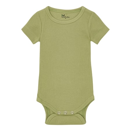 Grøn kortærmet rib body fra det danske mærke Birkholm. Lavet med masser af stræk i stoffet, så den sidder godt til uden at klemme. Super høj kvalitet, dejligt blødt stof og god åndbarhed. Et must-have i ungernes basis garderobe.
