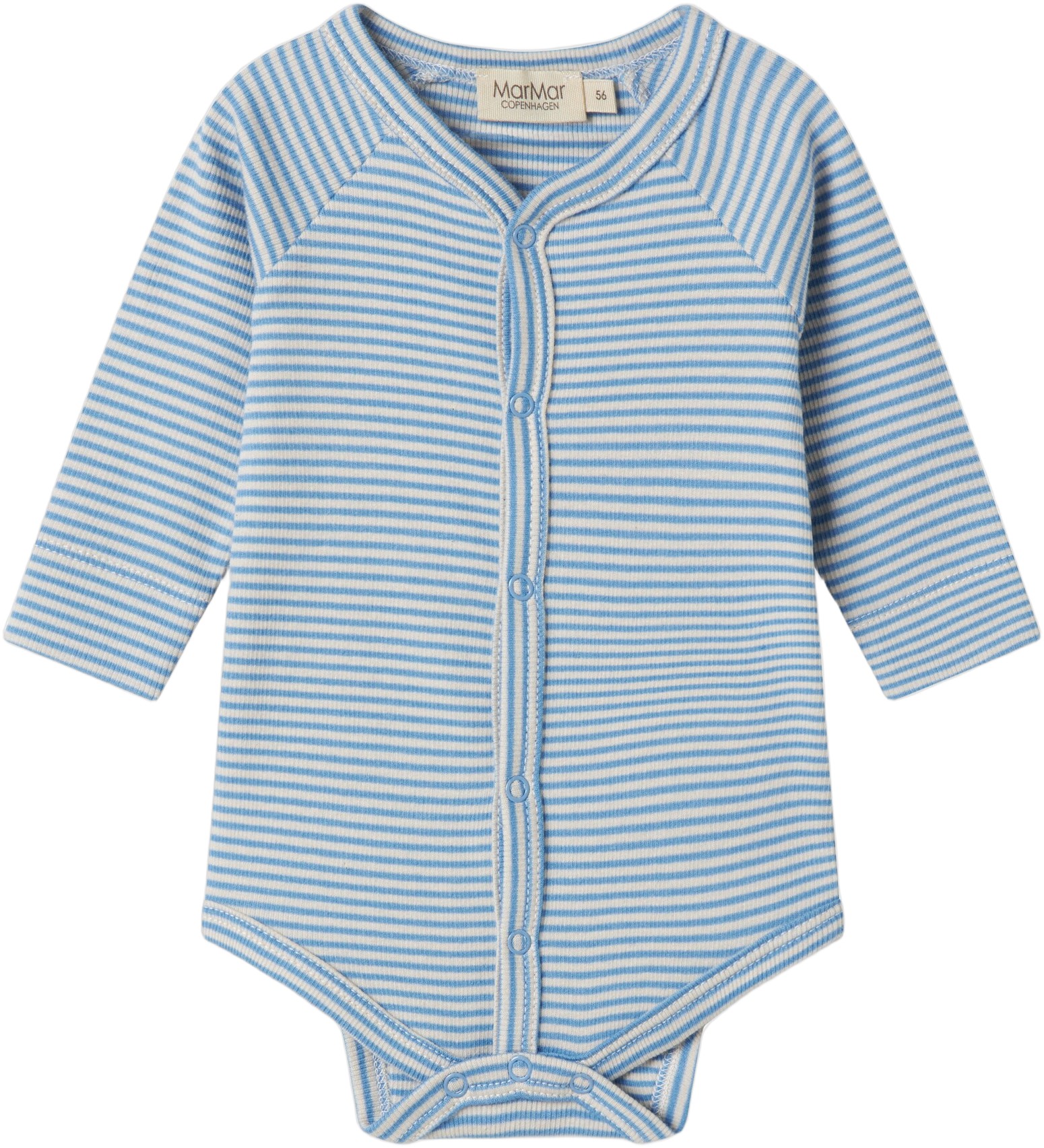 Enkel langærmet bodystocking med striber, der bliver lukket med trykknapper hele vejen ned foran samt mellem benene for nem bleskiftning. Bodystockingen er både blød, holder form og farve og har elastan i sig som gør den strækbar og behagelig at have på.