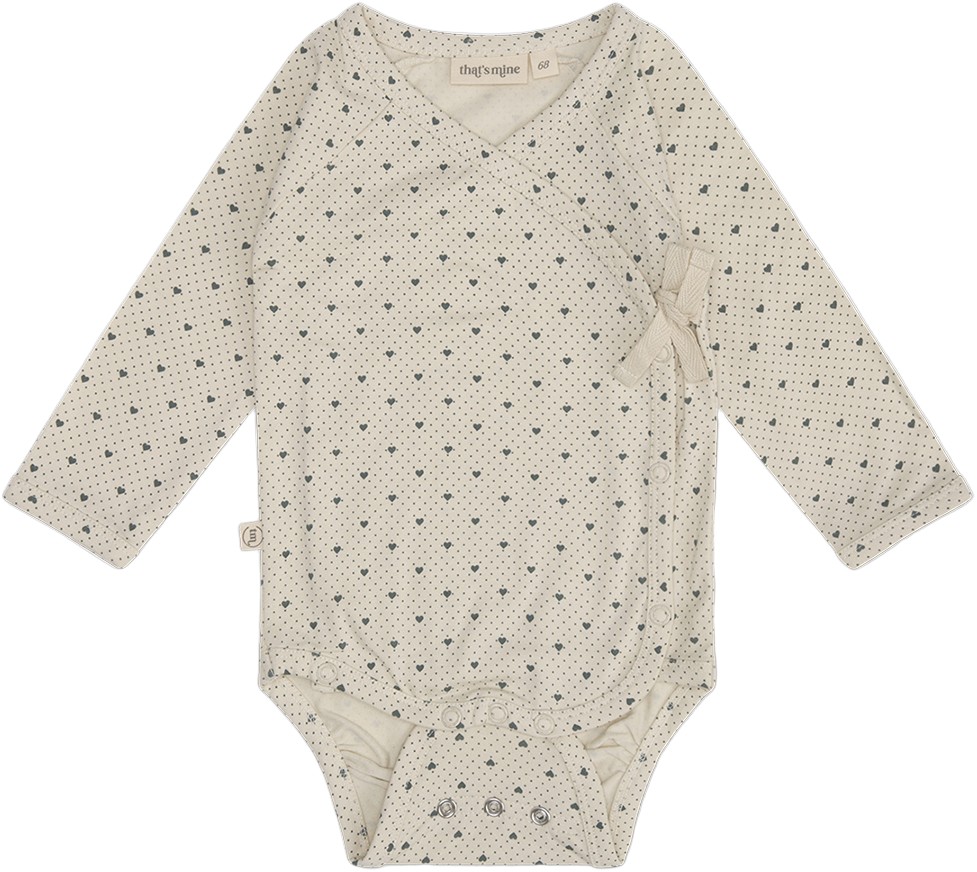 That’s Mines Elia body med smukke detaljer, gør det nemt at putte din lille i denne bløde slå-om bodystocking og er en perfekt body til de nyfødte. Brug bodystockingen i længere tid med de to rækker trykknapper til justering af længden. Lavet af blødt