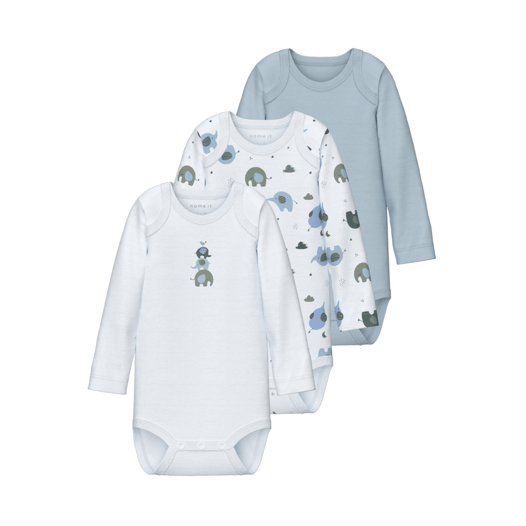 NAME IT 3-Pak Body Langærmet Baby Blue