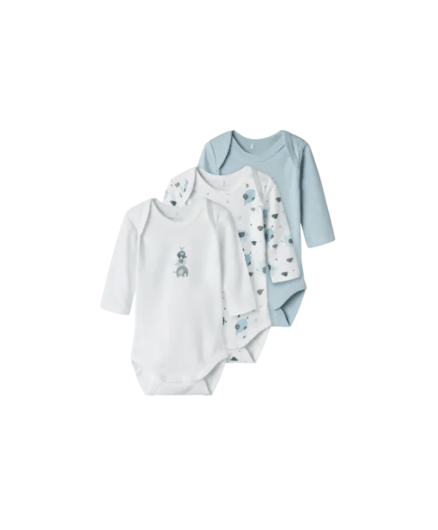 Name It 3-pak bodystocking til baby er lavet af blødt, åndbart materiale, der giver komfort hele dagen. Perfekt til hverdagens behov med trykknapper, der gør dem lette at skifte og style.