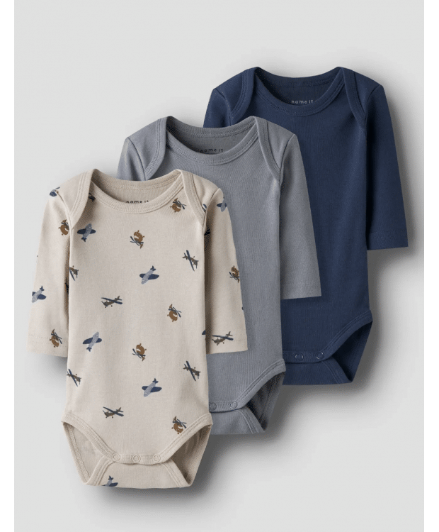 Name it 3pak bodystockings med flyvemaskine multifarvet til drenge