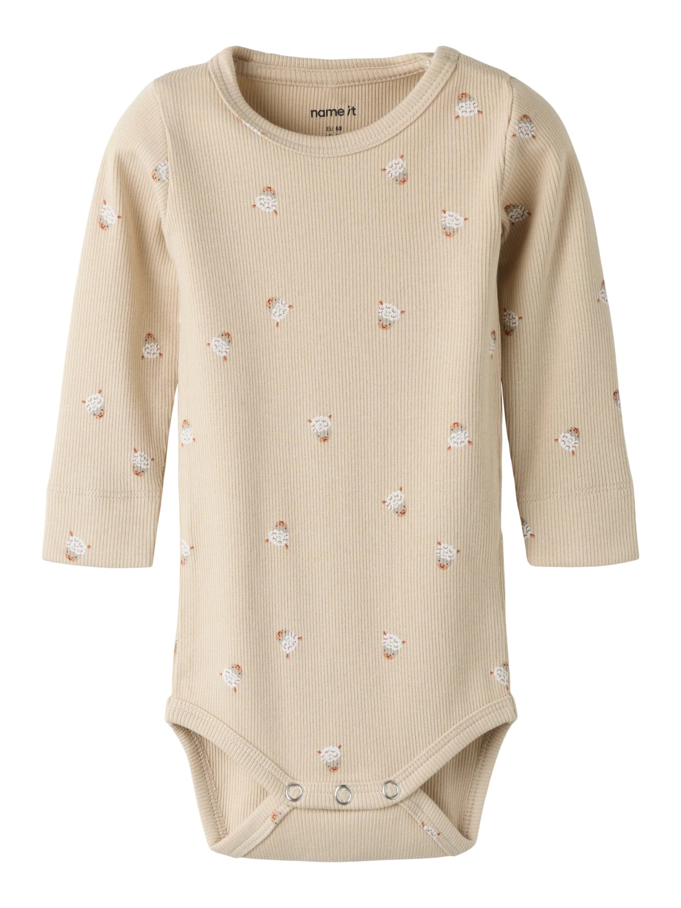 Blød og praktisk bodystocking med lange ærmer og rund hals, perfekt til brug året rundt. Den er fremstillet i ribstrik, som giver en behagelig og fleksibel pasform. Trykknapper ved skulder gør den nem at få af og på, mens det gennemgående print giver et f