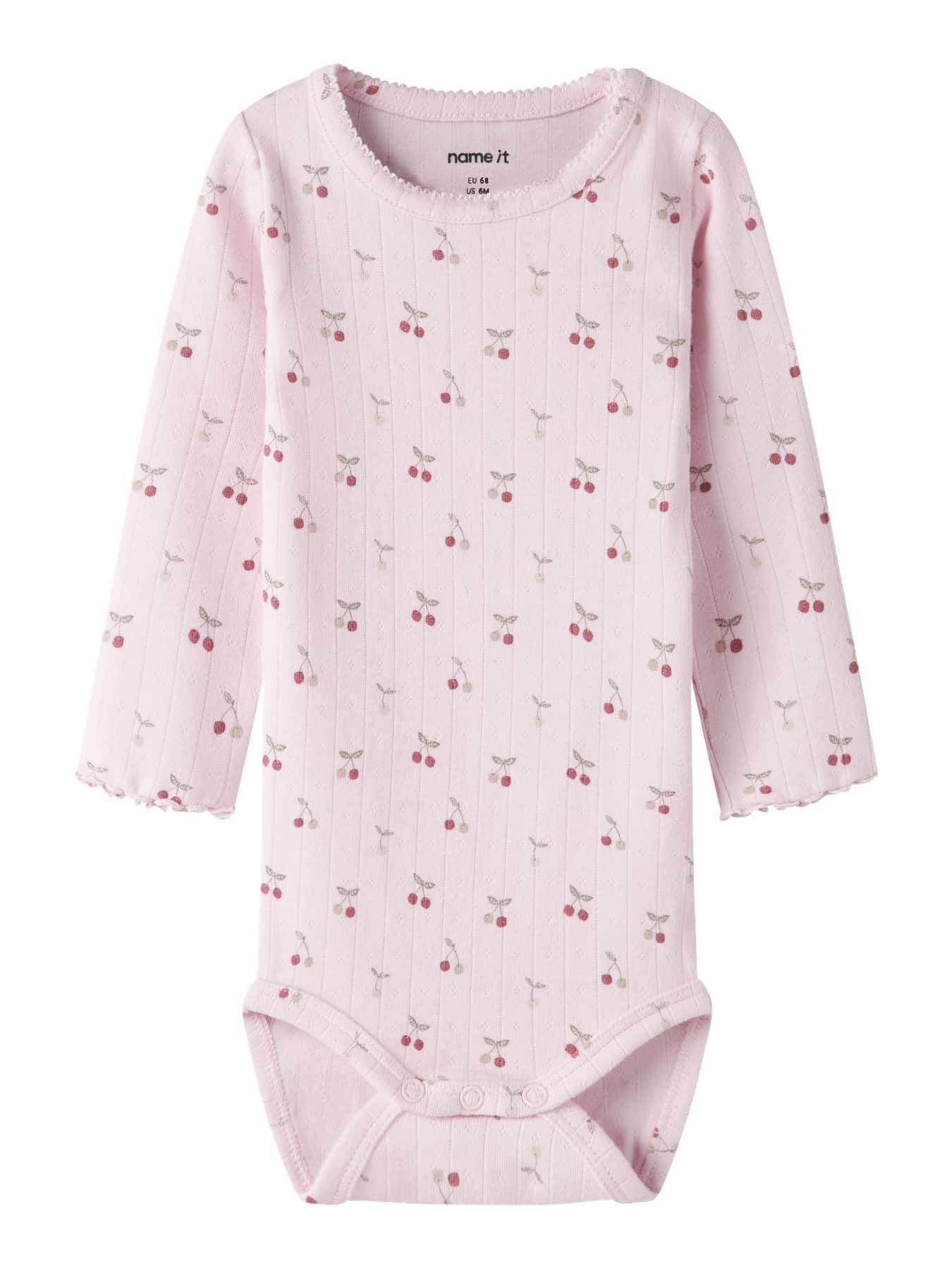 Bløde og praktiske bodystockings til børn, perfekte til brug hele året. Fremstillet i elastisk ribstrik med rund hals, lange ærmer og flæsekant på manchetterne. Trykknapper ved skridt og skulder gør dem nemme at tage på, og det gentagne mønster over hele