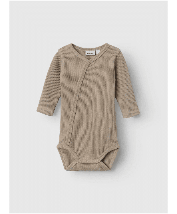 Name It Waffle bodystocking i brun til baby er både blød og åndbar med et moderne vaffelmønster. Den sikre pasform og det behagelige materiale gør den ideel til både leg og afslapning.