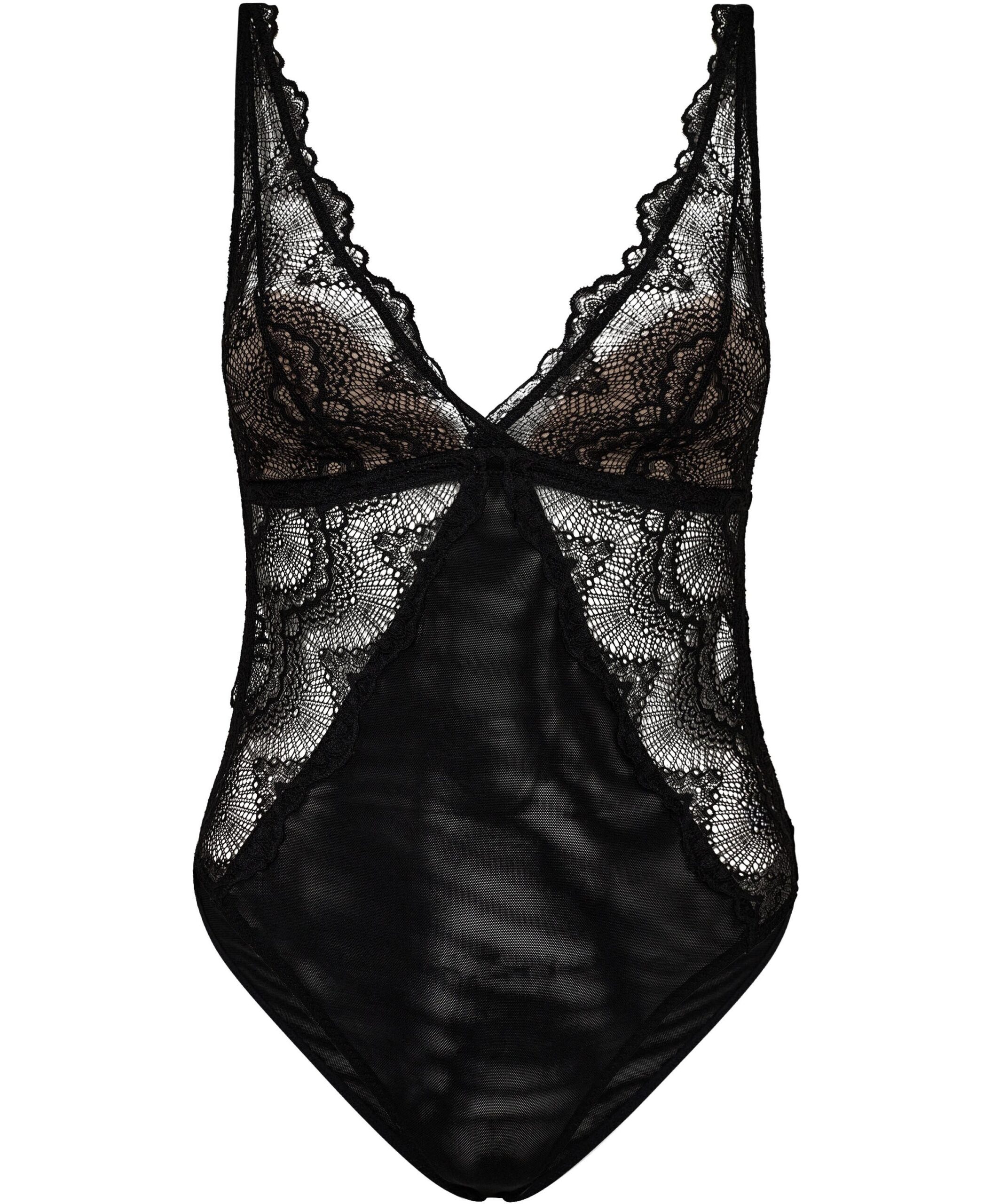 Bodystocking fra Magasin du Nord Collection i den fineste blondekvalitet. Bodystockingen er enkel i modellen med smalle, justerbare skulderstropper, let vatterede skåle, en bred elastik under brystet, trykknaplukning i den forede kile samt en smal hasp-lu