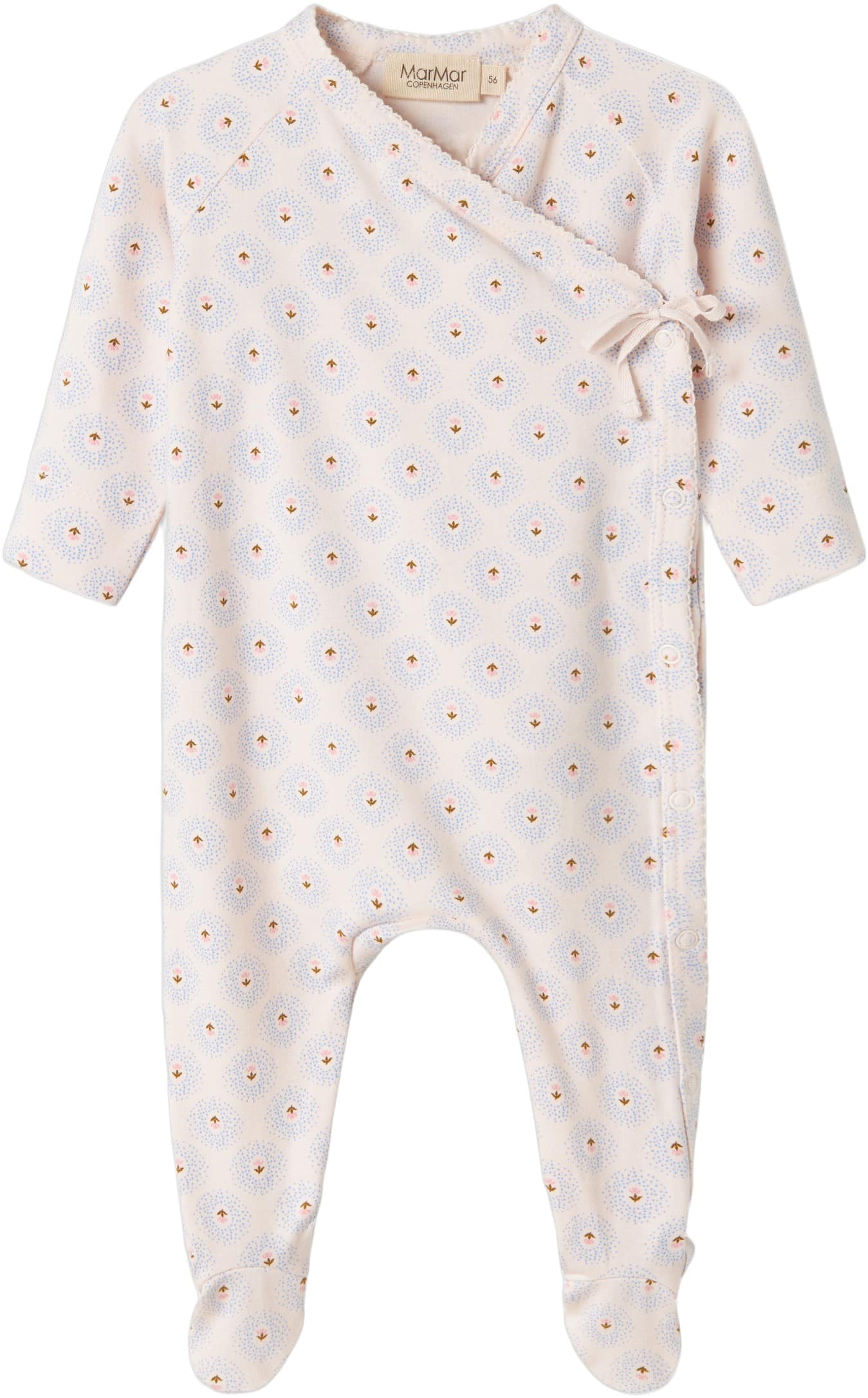 Langærmet baby modal bodystocking med stolpe knaplukning, der bliver lukket med trykknapper mellem benene for nem bleskiftning. Bodystockingen er både ribstrikket, blød, holder form og farve og har elastan i sig som gør den strækbar og behagelig at have p