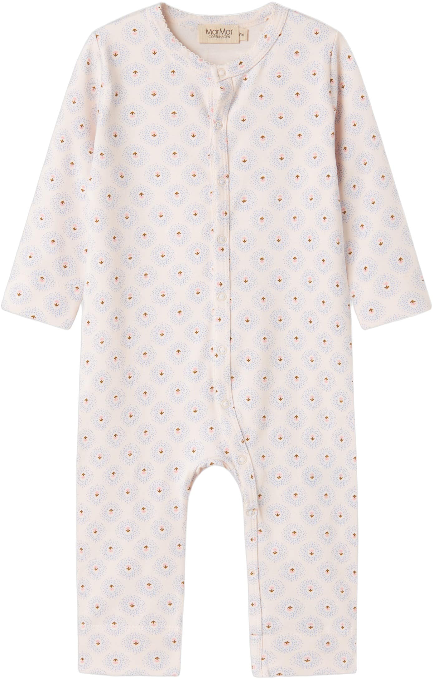 Langærmet baby modal bodystocking med stolpe knaplukning, der bliver lukket med trykknapper mellem benene for nem bleskiftning. Bodystockingen er både ribstrikket, blød, holder form og farve og har elastan i sig som gør den strækbar og behagelig at have p