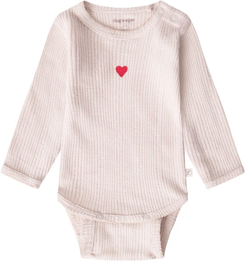 Blød børstet pointelle-bodystocking i økologisk bomuld med et lille broderet hjerte foran. Brug bodystockingen i længere tid med de to rækker trykknapper til justering af længden.