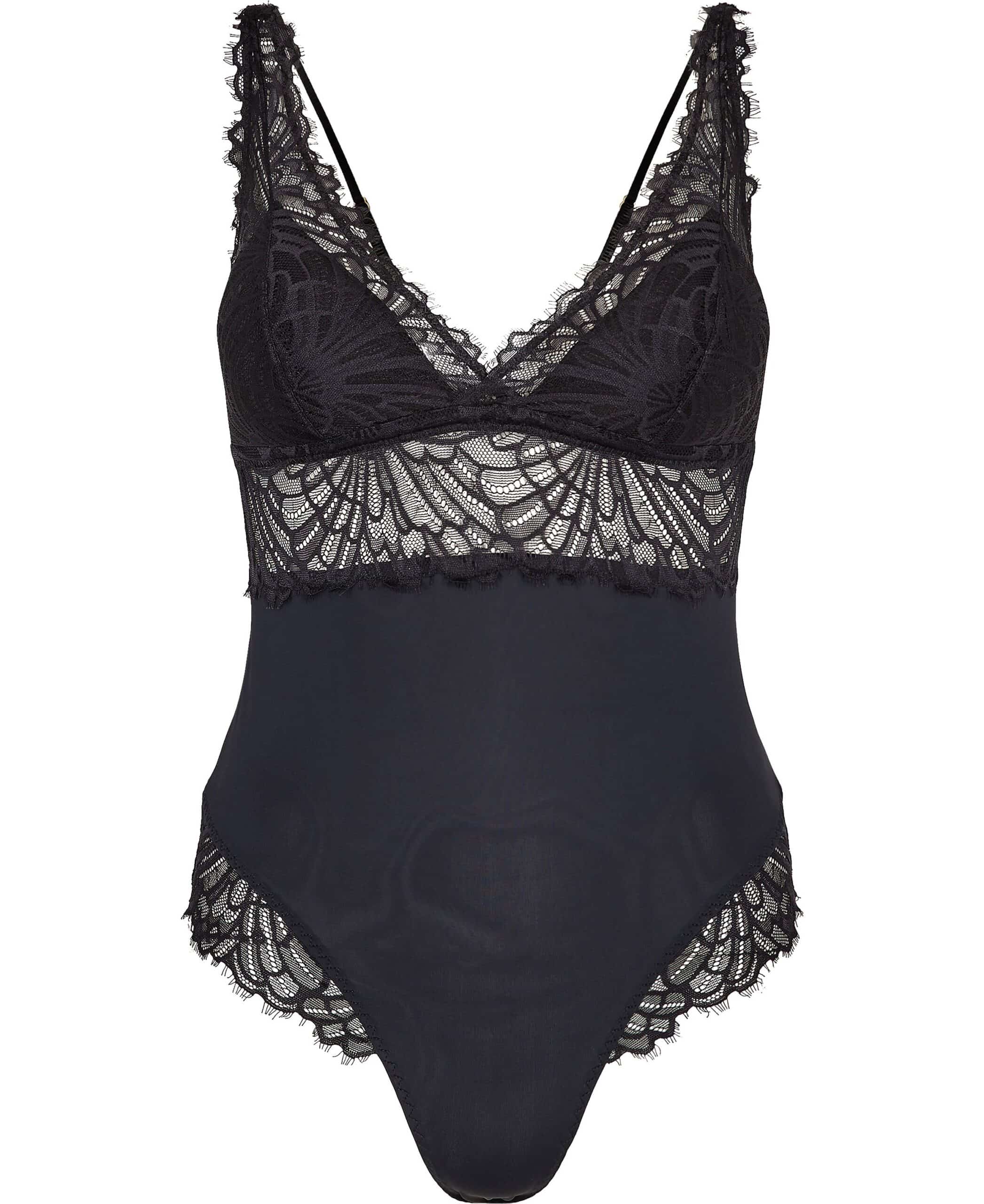 Bodystocking fra Magasin du Nord Collection i en smuk kvalitet med blondedetaljer. Bodystockingen er enkel i modellen med let vatterede skåle, en klassisk trykknapslukning samt smalle, justerbare skulderstropper.