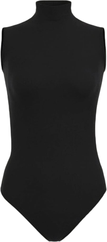 Kropsdragt uden ærme. Denne bodysuit kombinerer en sofistikeret rullekrave med en kurvehæmmende, ærmeløs pasform og er lavet af et sømløst rør af cirkulært strikket materiale. Kanterne er forstærket med skjult elastisk tape. Essentiel, sømløs Modal/Elasta
